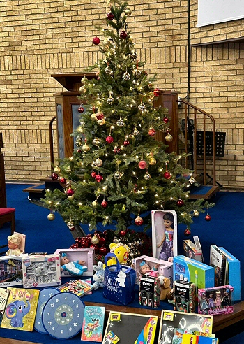 Our Toy Service again collected toys and toiletries for distribution by the Salvation Army. The toiletries were donated during a special coffee morning held the day before the service.